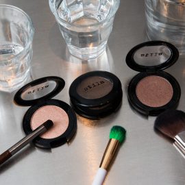 Baked shadows are also fair game—we’re fans of Laura Mercier’s Baked Eye Colour Wet/Dry and Lorac’s Starry-Eyed Baked Eye Shadow Trio in particular.